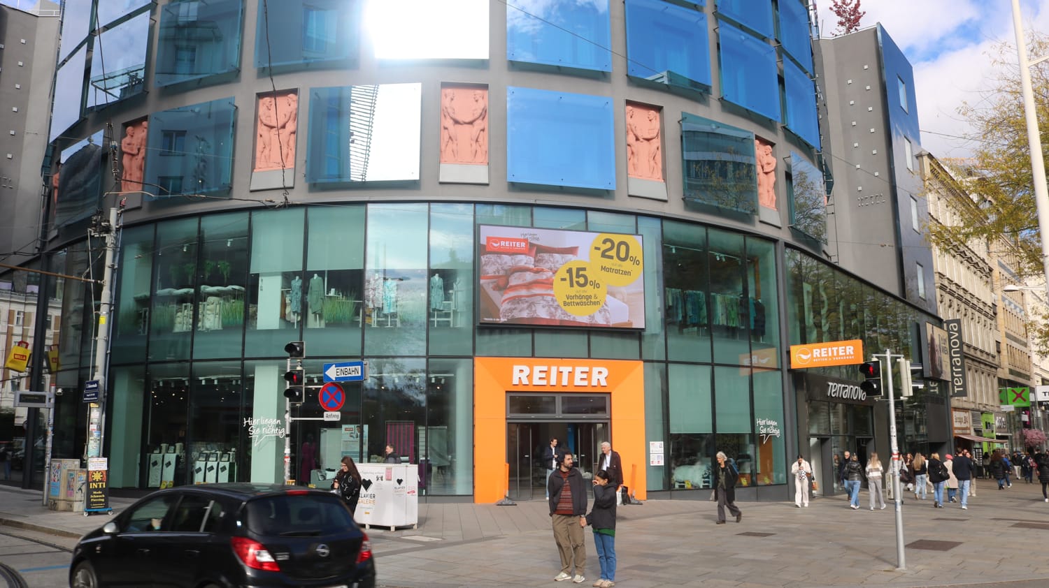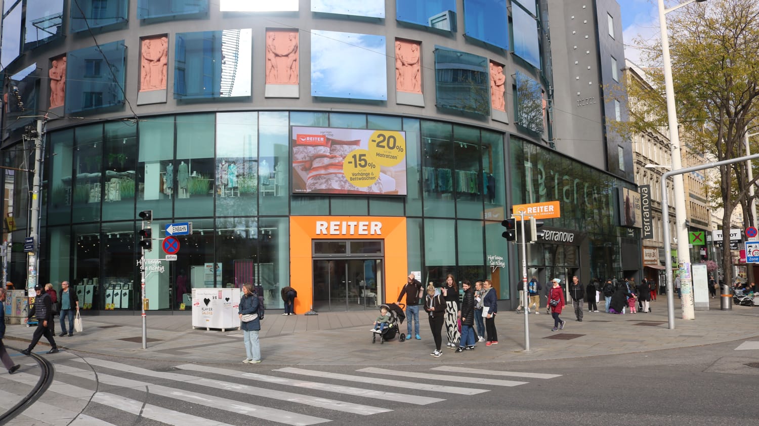 Das Highlight: Die gesamte Umrüstung wurde in nur zwei Tagen, mitten über dem Haupteingang und während der Geschäftszeiten durchgeführt – ohne Einschränkungen der Geschäftstätigkeit. Damit wurde eines der modernsten LED-Displays in einer der meistfrequentierten Straßen Wiens erfolgreich installiert.