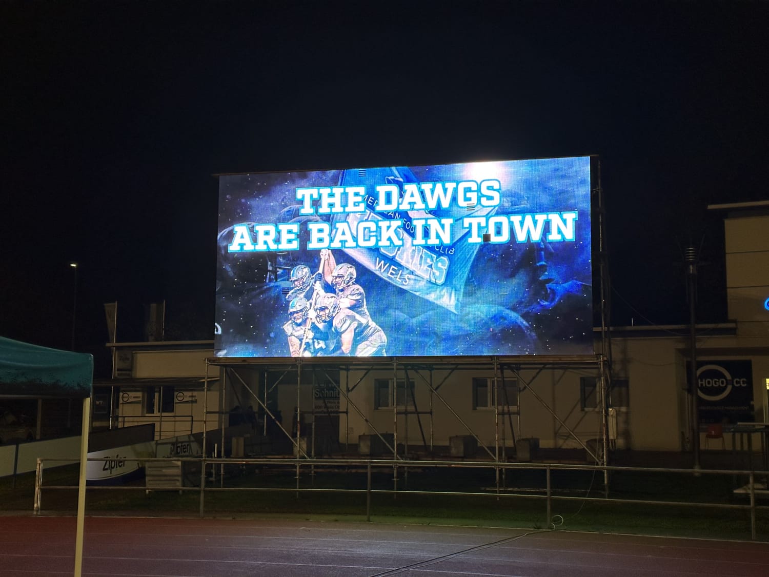 Das American Football Team der Huskies Wels setzt bei seinen Gamedays auch voll auf Video und digitale Präsentationen über die eigene Videowall im Stadion.