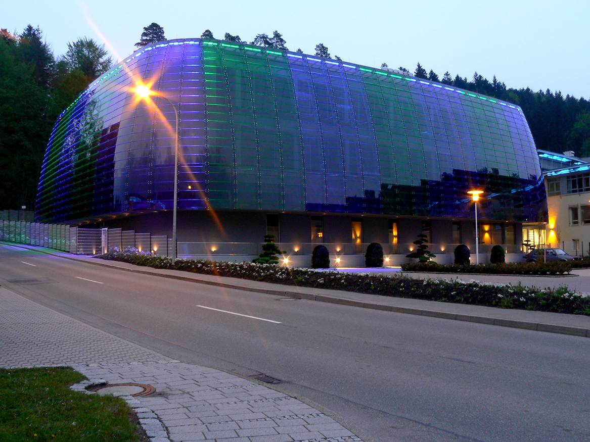 Besonderes Merkmal des neu errichteten Entwicklungscenters der Friedrich Boysen GmbH & Co KG in Altensteig bei Stuttgart bildet die futuristisch anmutende Glasfassade.