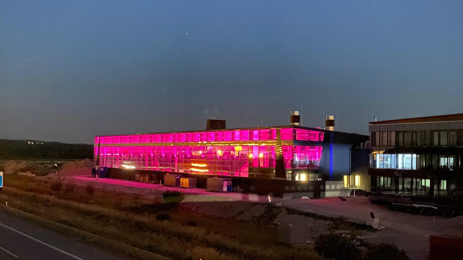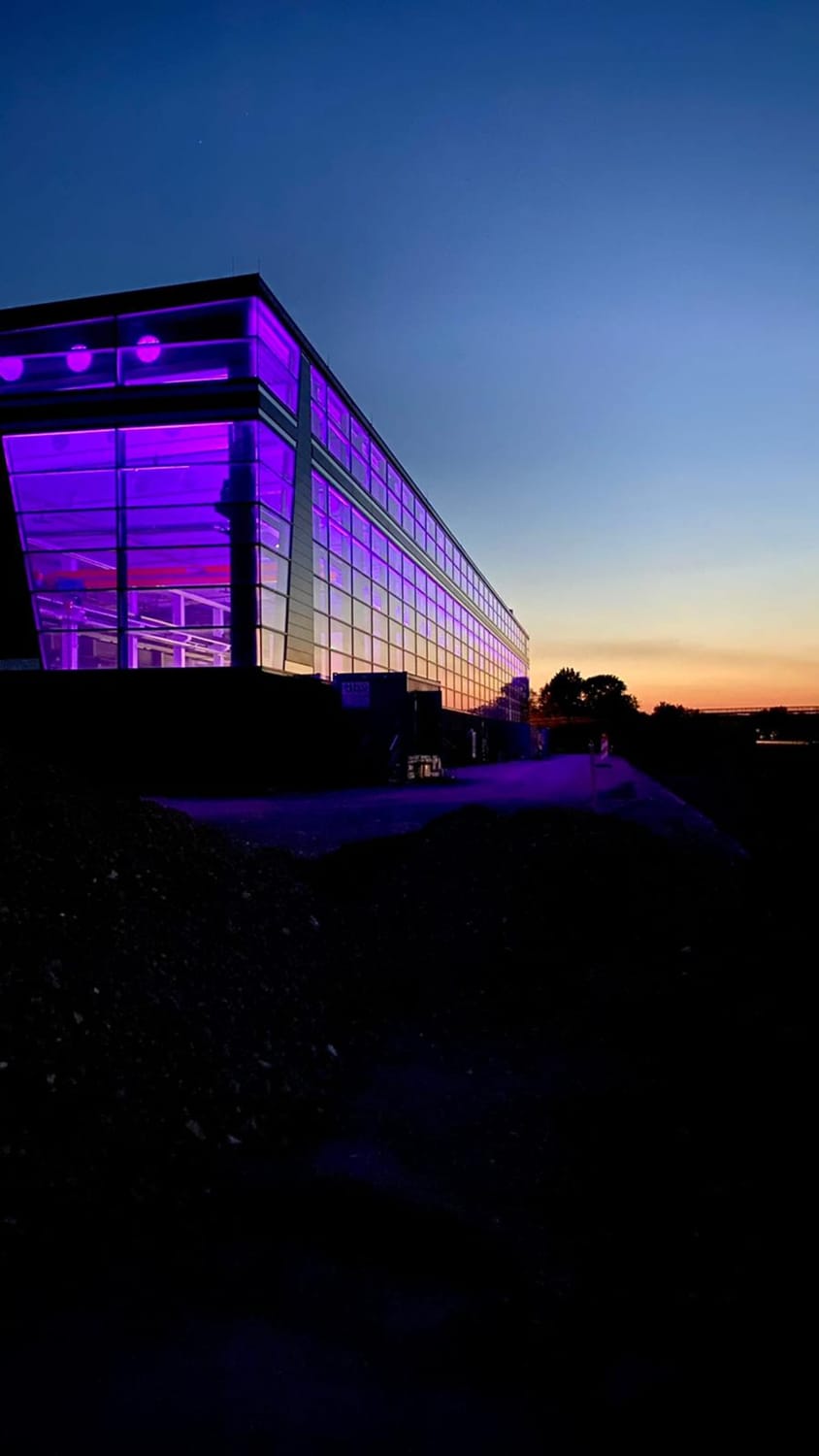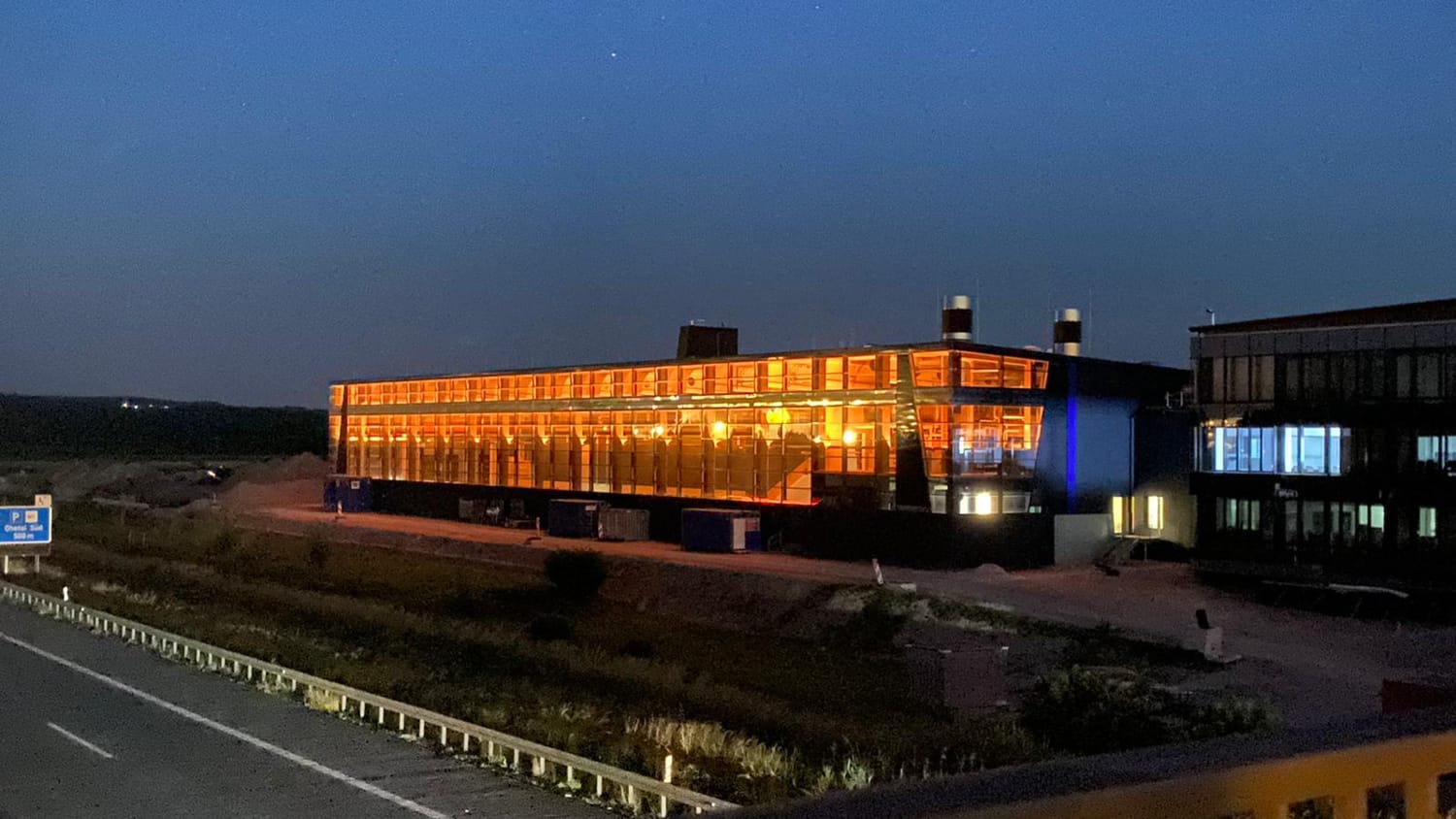 Die neue Halle des Bauunternehmens KARL in Hengersberg an der A3 wird bei Nacht durch Farblicht im Bereich der Glasfassade eindrucksvoll inszeniert. Die gezielte Illumination hebt den neuen Standort hervor und unterstreicht den hohen gestalterischen Anspruch des Unternehmens, sodass die Architektur auch bei Nacht zu einem sichtbaren Statement wird.