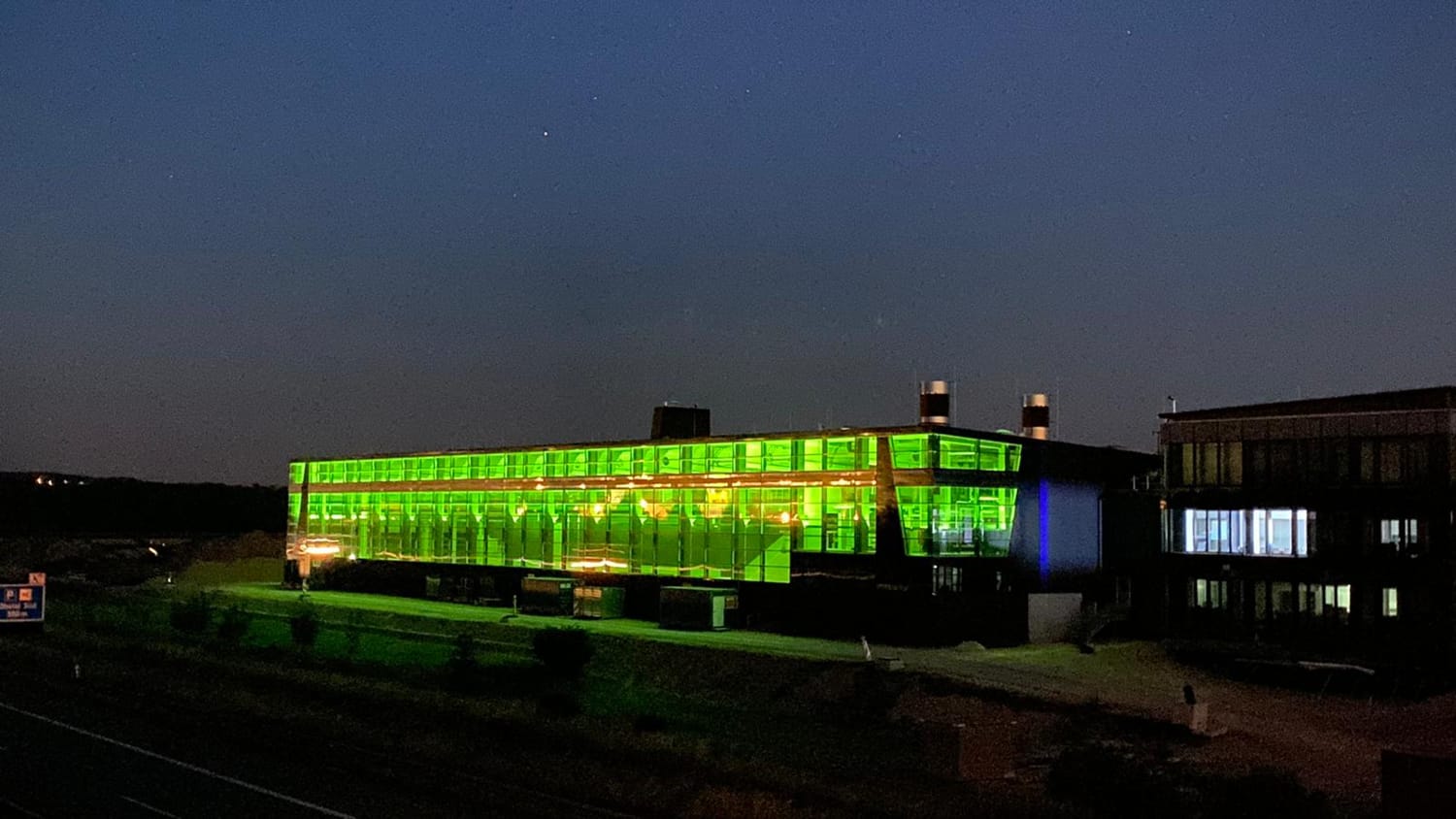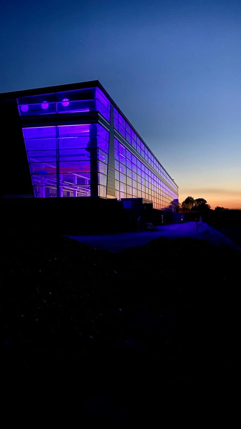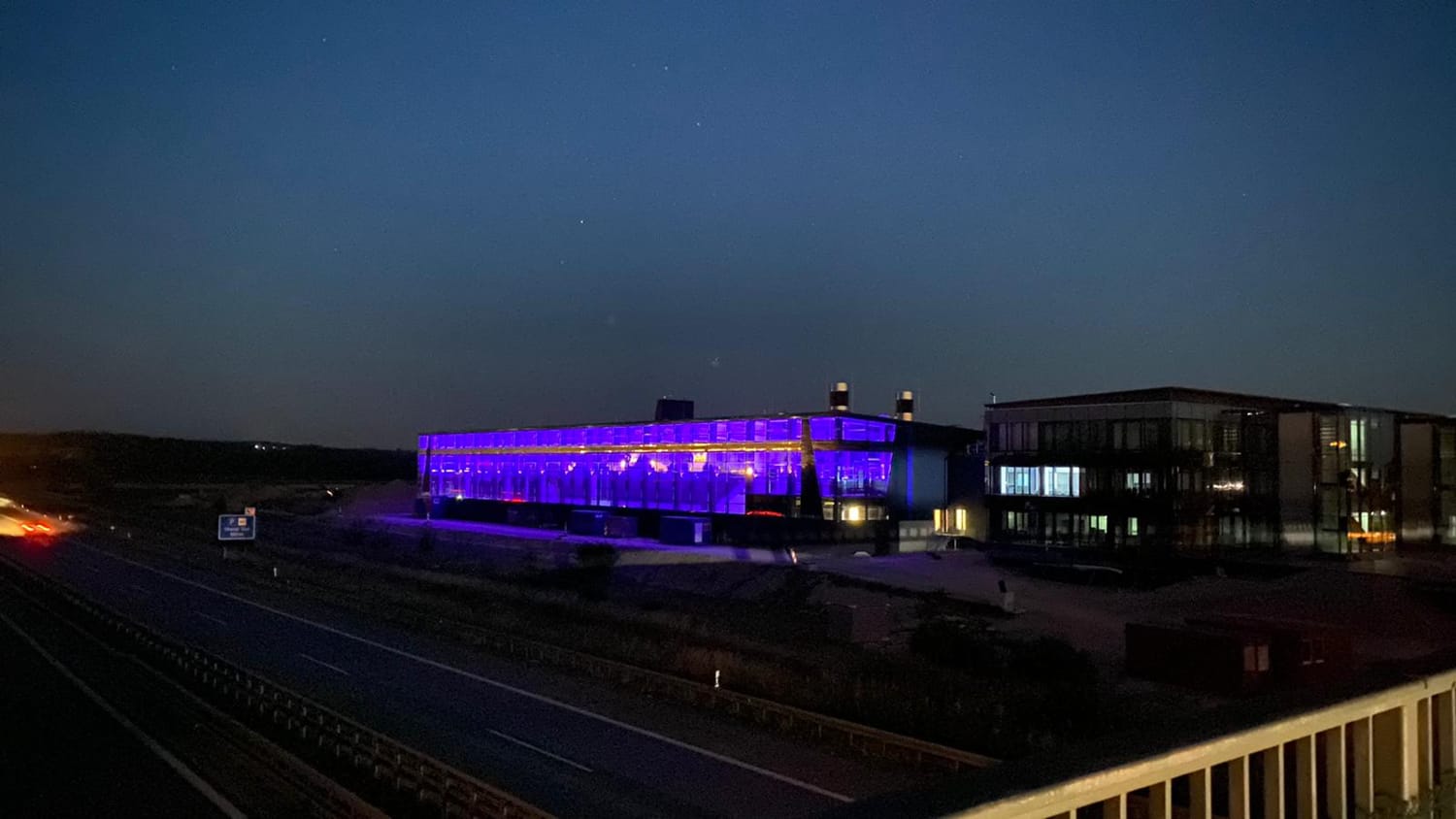 Die neue Halle des Bauunternehmens KARL in Hengersberg an der A3 wird bei Nacht durch Farblicht im Bereich der Glasfassade eindrucksvoll inszeniert. Die gezielte Illumination hebt den neuen Standort hervor und unterstreicht den hohen gestalterischen Anspruch des Unternehmens, sodass die Architektur auch bei Nacht zu einem sichtbaren Statement wird.
